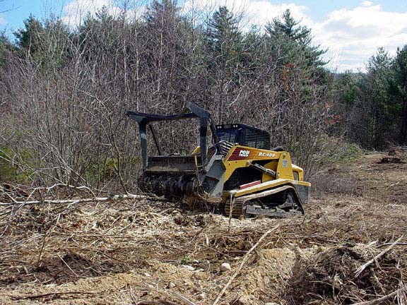 The stump barely visible when mowed to ground level. This whole tree mowing process, from start to finish, took just under two minutes to complete.