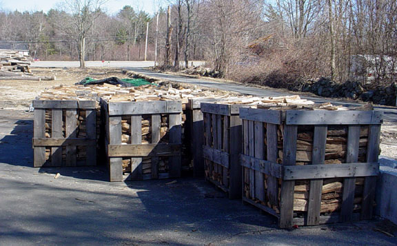 Half cords, stored in elevated pallets for continuous air-drying, are covered during wet weather,